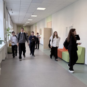 В четырехэтажном здании школы 1937 года постройки обучаются более 700 детей. По нацпроекту здесь ремонтируется кровля, фасад, цоколь, отмостки, входные группы, лестницы, инженерные системы, меняют дверные блок, также предусмотрены внутренние отделочные работы.