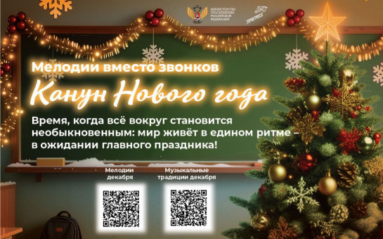 Школьные звонки заменят классическими произведениями. Легко узнаваемые и детьми, и взрослыми мелодии помогут задать новогоднее настроение и познакомят учащихся с культурным наследием России. В декабрьской подборке – «Зима» (Антонио Вивальди), «Пляска скоморохов» (Николай Римский-Корсаков), а также «Вальс» из оперы «Евгений Онегин», «Вальс цветов» и «Святки (декабрь)» (Петр Чайковский).