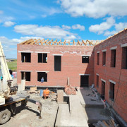 В настоящее время ведутся отделочные и фасадные работы. Продолжается монтаж инженерных сетей и благоустройство территории.
